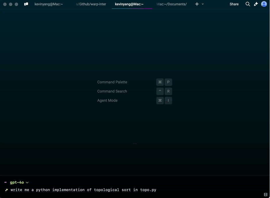 Learn more about how to use Agent Mode in our docs here. Give it a try and let us know what you think! We’d love for you to share your experience with us on X (Twitter) @warpdotdev.