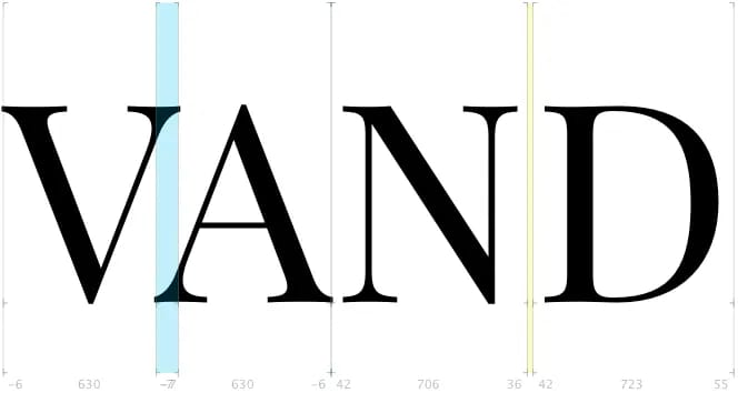 Unfortunately, simply factoring in the width of the glyphs isn’t sufficient to produce good-looking text with a proportional font. Some glyph pairs - such as capital A and V - just feel too far apart, even with glyph width factored in, due to their shapes. In these situations, font authors specify an additional adjustment factor that should be applied to this pair of glyphs in order to keep everything visually pleasing. The process of making these adjustments is called kerning 3.