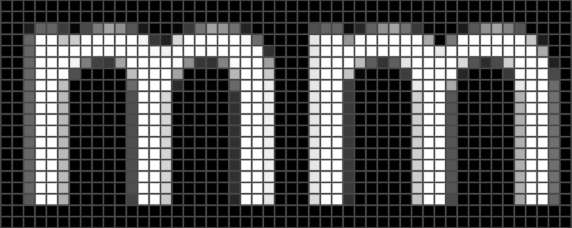 Modern text rendering takes things one step further, leveraging the fact that LCD monitors have three separate, independently-controllable sub-pixels that comprise the red, green, and blue components of each pixel. This process, sub-pixel anti-aliasing, performs sampling at the level of each sub-pixel, and adjusts the result to ensure the colored sub-pixels don’t affect the perceived color of the glyph.