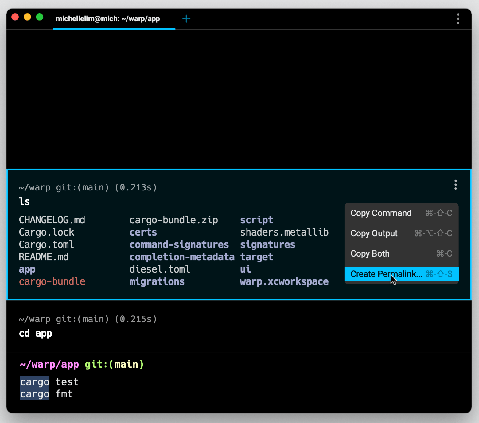 - If you’ve been wanting to use Warp but found it to be a literal pain in the neck, you can now enable a uniquely ergonomic “Reverse mode” which keeps input pinned at the top and lets blocks of input/output flow down the page in reversed order. This mode might take some getting used to, but it has the potential to deliver real, quality of life improvements for developers who work in the command line for hours at a time.