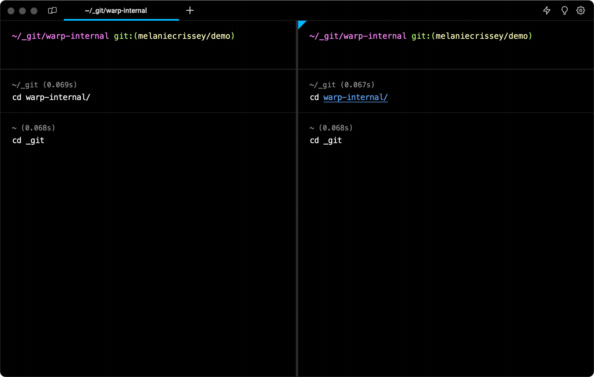 One neat feature of context chips in Warp’s customized prompt is they dynamically update across multiple sessions without you even needing to run a command.