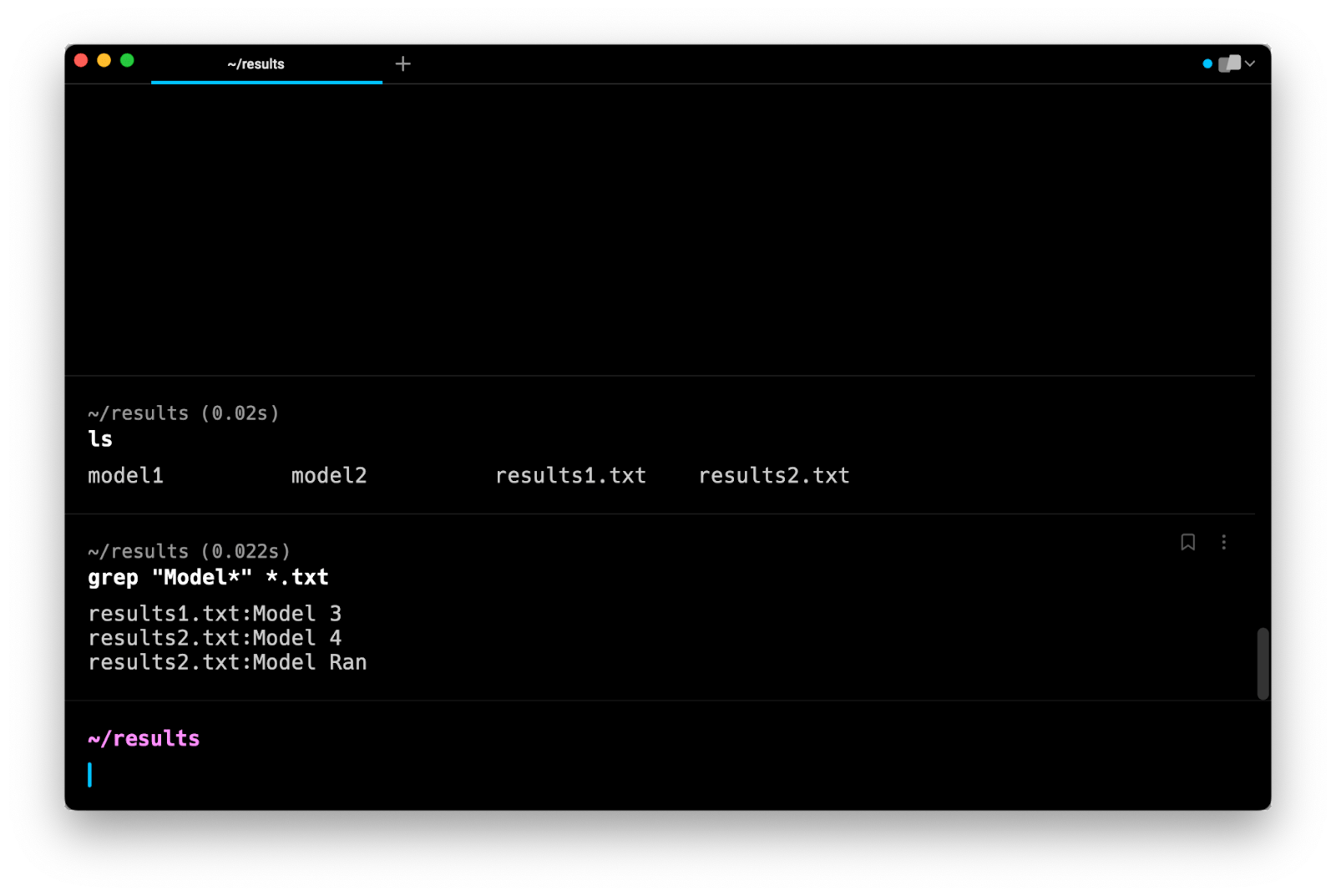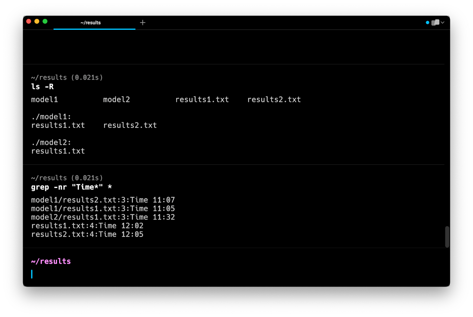 Note that this command does not search in subdirectories. Instead, it tells you that model1 and model2 are directories and that they are not searched.