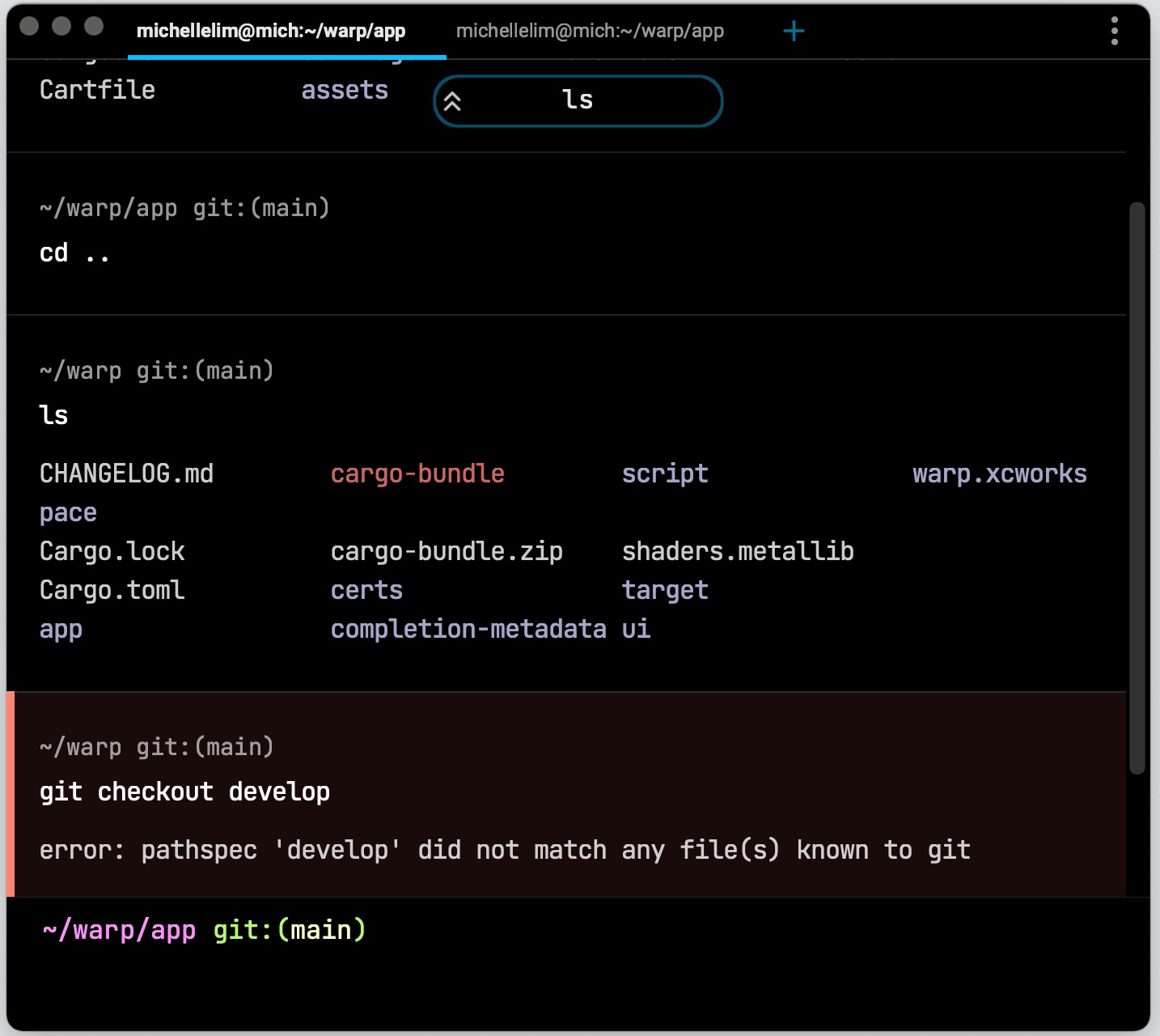 Warp's first iteration of tabs