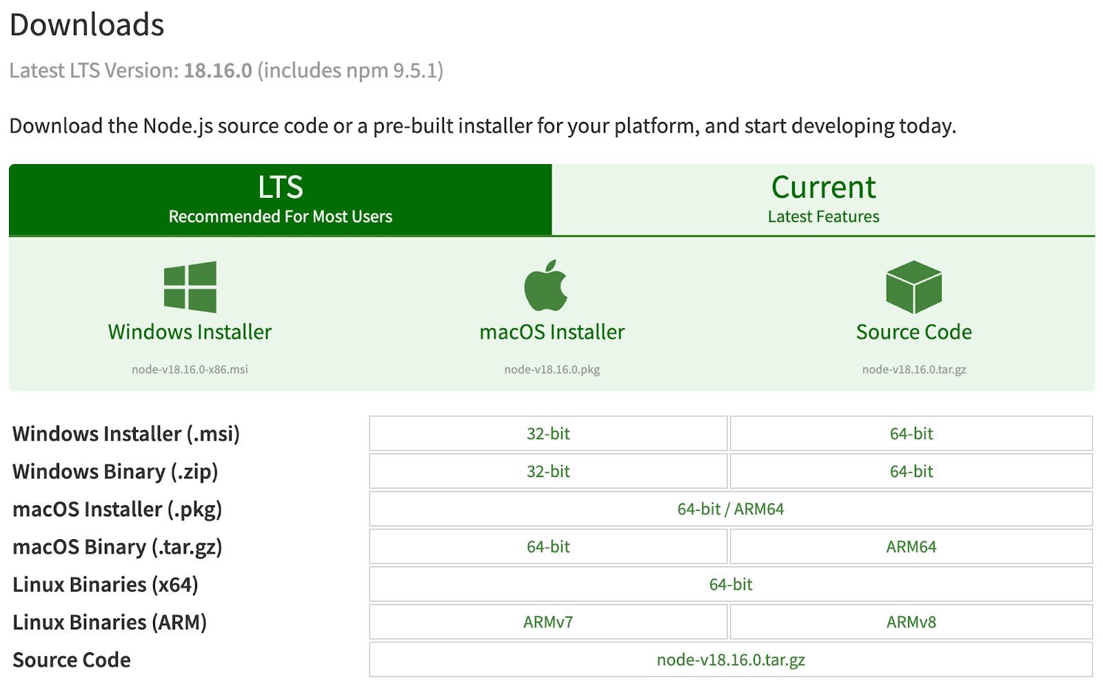 Whether you're using macOS, Linux, or Windows, the easiest way to reinstall Node.js using the graphical interface is to visit the official Node.js website at https://nodejs.org/en/download.