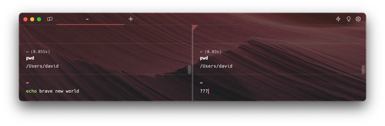 You might argue that syncing text selection isn’t all that important. But a further point is what happens when we start typing brave new to replace hello in that terminal 1? Generally speaking, non-intuitive behavior in the terminal can make it easier for users to accidentally run dangerous commands so we must be careful.