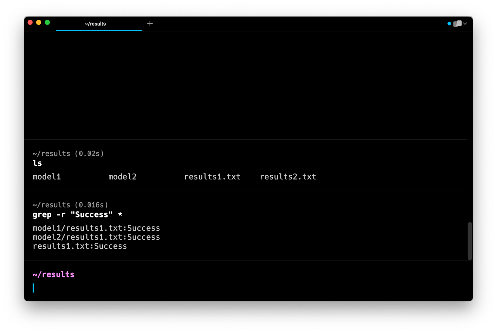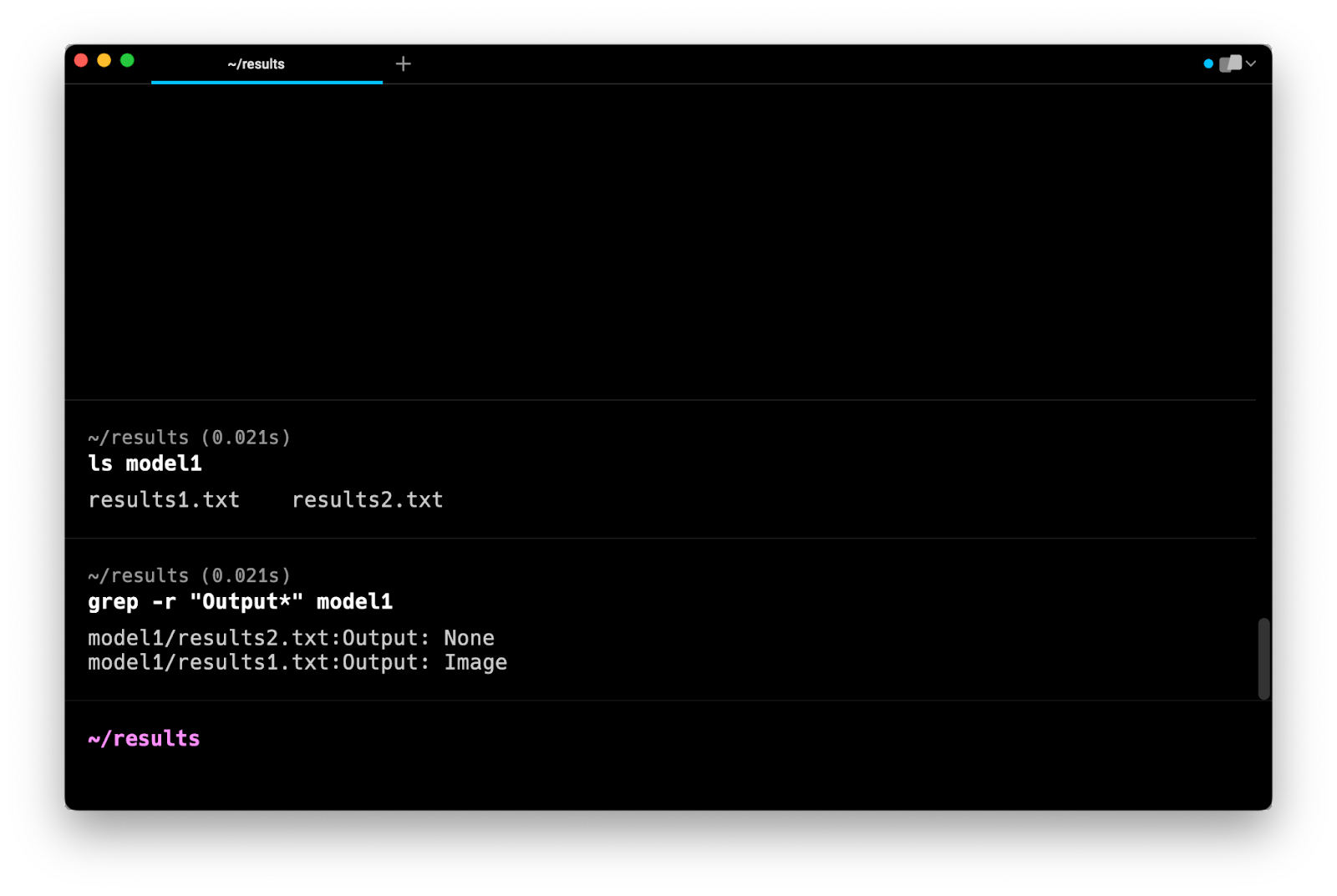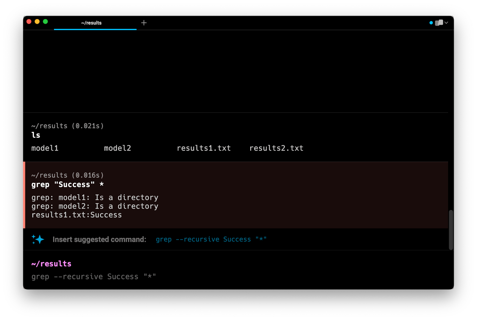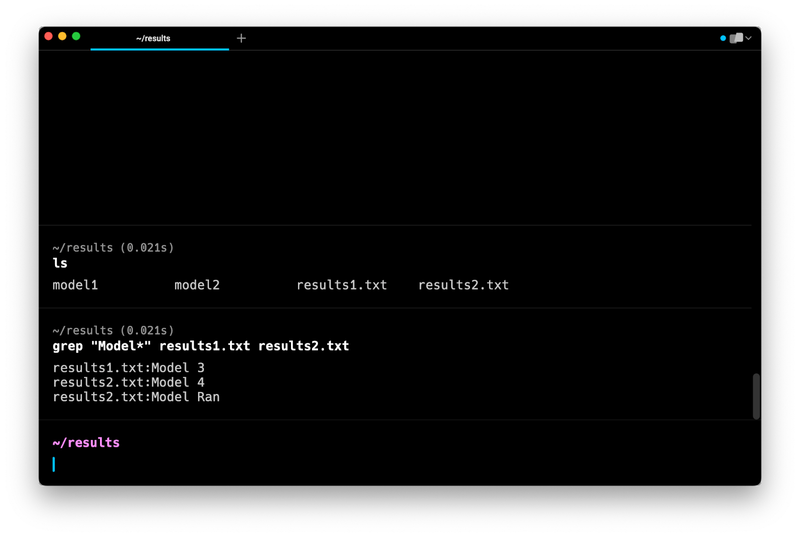 Note that this command does not search in subdirectories. Instead, it tells you that model1 and model2 are directories and that they are not searched.