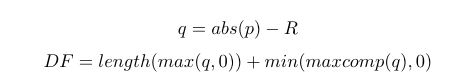 Where p is the vector of the pixel, and R is the vector of the rectangle corner. Check out Inigo Quilez’s derivation of the distance field function here.
