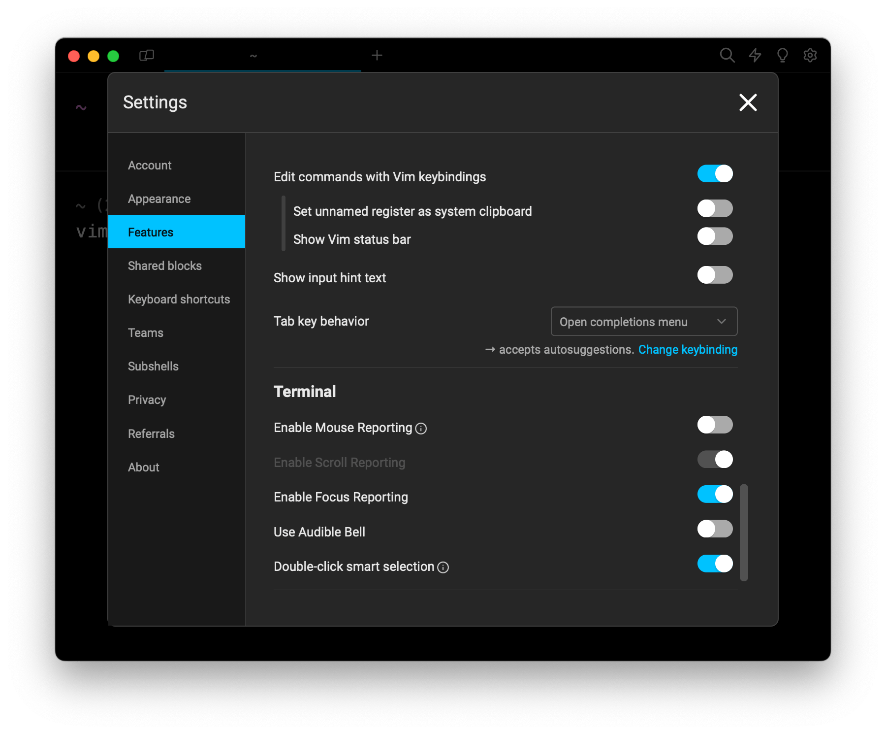 Warp recently released the option to edit commands with Vim keybindings. This setting is now generally available.