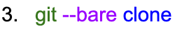 3. We have 3 parts: green, purple and blue contiguous text (“git”, “ --bare” and “ clone”).