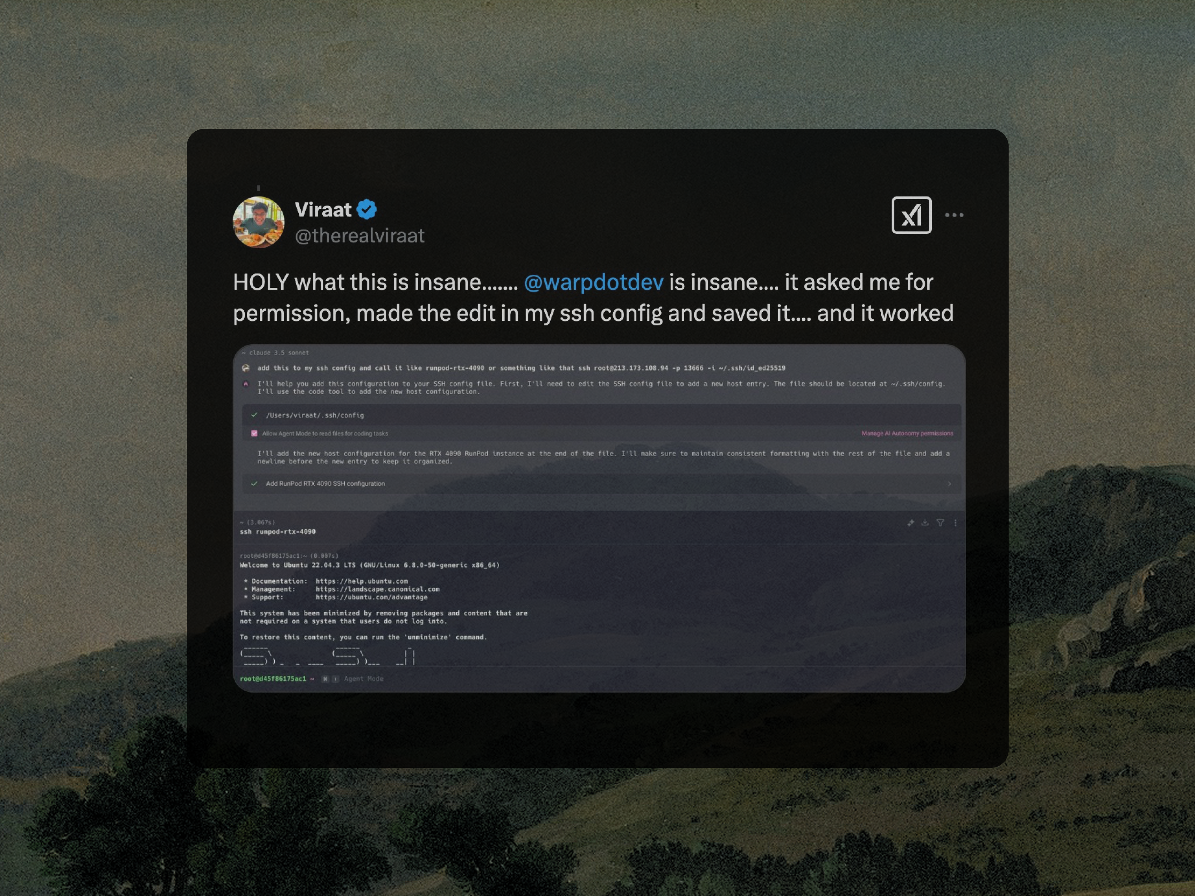 Warp’s AI is deeply integrated into the terminal experience and will use everything from your saved commands, your codebase context, what shell you are in, and your past actions to recommend the right solution.
