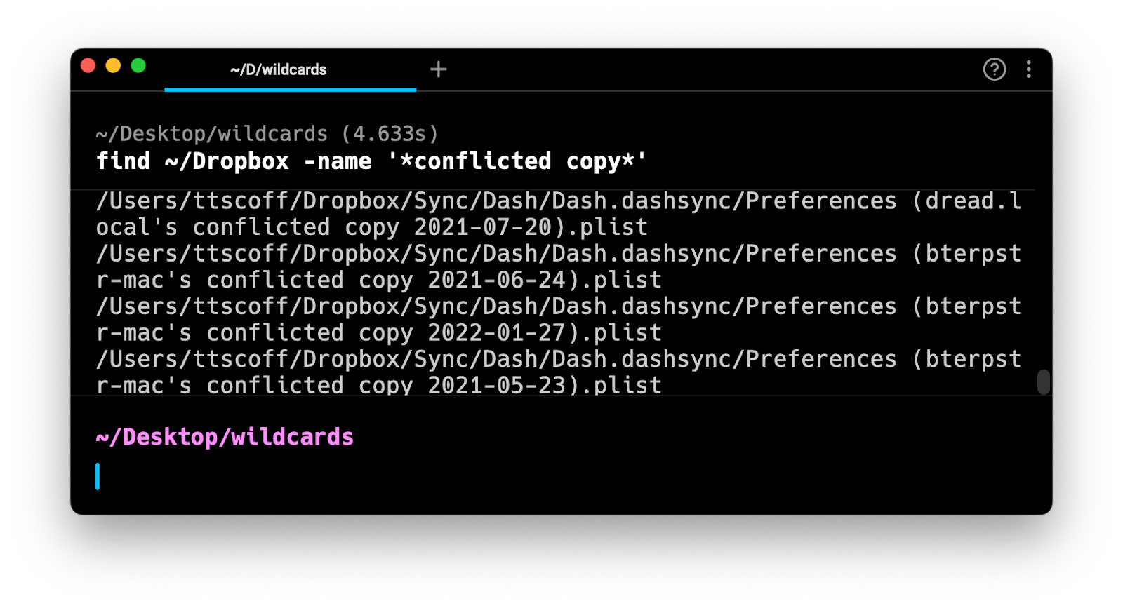 There are also square bracket operators in most shells (notably not Fish). These allow you to define a specific character set to match, e.g. myfile-[0-2].txt. That would match myfile-1.txt and myfile-2.txt, but not myfile-3.txt or myfile-10.txt. Square bracket operators can give you more granular matching than * or ?. Note that a square bracket expression can only match a single character; unlike regular expressions, there's no repeat operator. Square brackets can contain a list of individual characters that are matched, e.g. [adg] to match a, d, or g, or a range of numbers or letters to allow, specified with a hyphen between two characters. Matching is case-sensitive, so if you want to match any letter between a and z regardless of case, your expression would be [a-zA-Z]. To replicate the * operator but exclude any non-alphanumeric characters, use [a-zA-Z0-9].