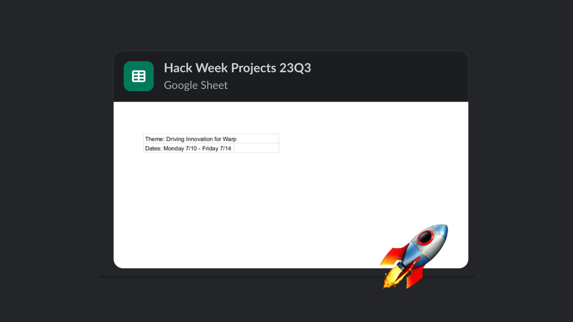 At this point, Hack Week was mostly an idea with a theme, “Driving Innovation for Warp” but we knew we had space to make it happen.